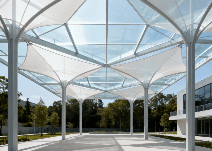 Create striking and functional spaces with our durable tensile roofing solutions. Designed for strength, flexibility, and modern aesthetics, ideal for commercial and residential needs.